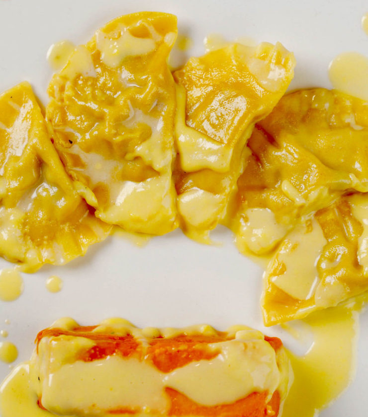Sformato Di Zucca Con Mostarda Mantovana, Ravioli Di Faraona Arrosto