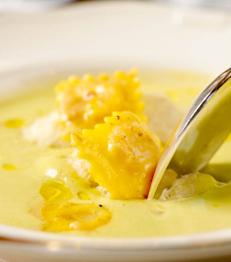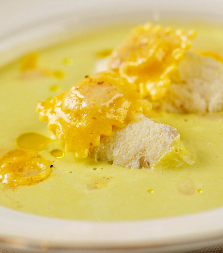 Zuppa Di Porro Con Baccalà Mantecato, Ravioli Di Patate e Tartufo Nero