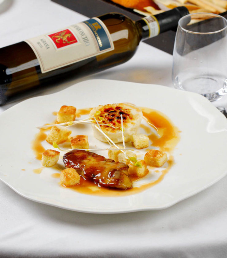 Scaloppa Di Fegato D’oca Al Passito Di Romagna Con Catalana Di Parmigiano e Panbrioches